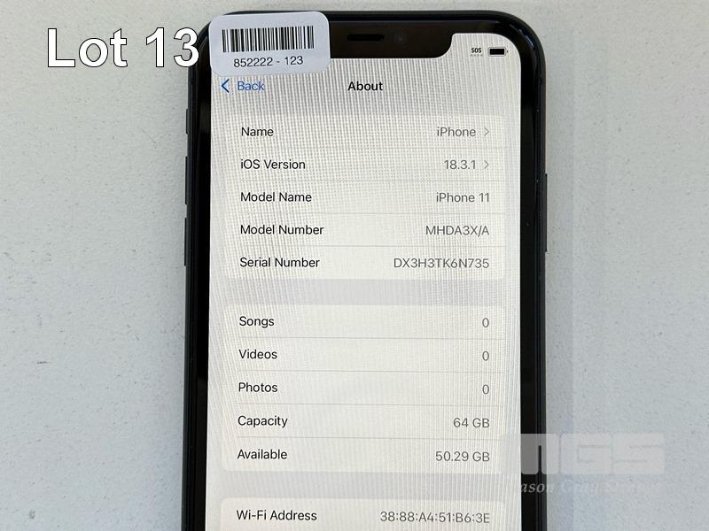 APPLE iPHONE 11, 64GB, MODEL MHDA3X/A, A2221, BLACK, BATTERY HEALTH 88% (NO CABLE, NO CHARGER) S/N:DX3H3TK6N735