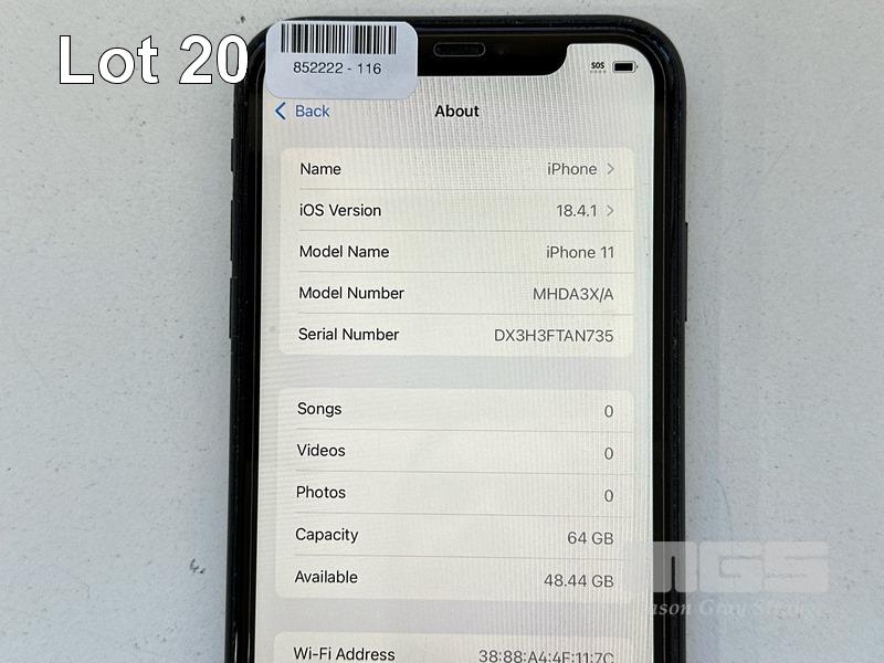APPLE iPHONE 11, 64GB, MODEL MHDA3X/A, A2221, BLACK, BATTERY HEALTH 85% (NO CABLE, NO CHARGER) S/N:DX3H3FTAN735