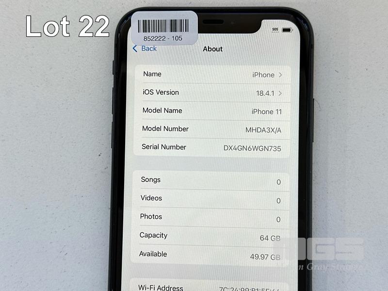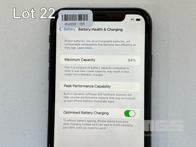 APPLE iPHONE 11, 64GB, MODEL MHDA3X/A, A2221, BLACK, BATTERY HEALTH 84% (NO CABLE, NO CHARGER) S/N:DX4GN6WGN735