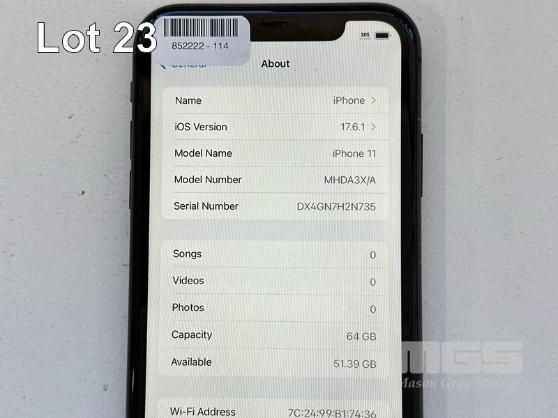 APPLE iPHONE 11, 64GB, MODEL MHDA3X/A, A2221, BLACK, BATTERY HEALTH 84% (NO CABLE, NO CHARGER) S/N:DX4GN7H2N735