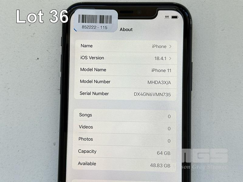 APPLE iPHONE 11, 64GB, MODEL MHDA3X/A, A2221, BLACK, BATTERY HEALTH 82% (NO CABLE, NO CHARGER) S/N:DX4GN6VMN735