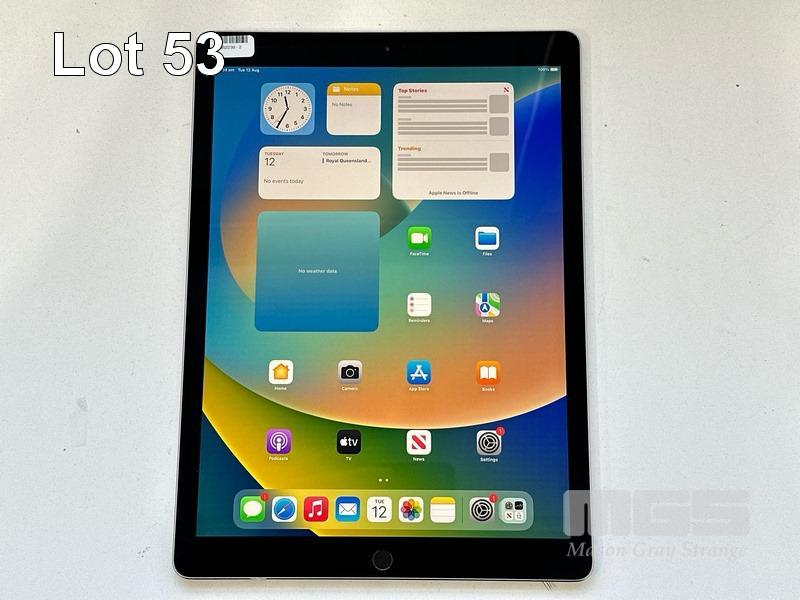 APPLE iPAD PRO 12.9 INCH, 2ND GEN, 64GB, Wi-Fi, SPACE GREY, MODEL MQDA2X/A, A1670 (NO CABLE, NO CHARGER) (NOTE: SCREEN BLEMISHES, MINOR SCRATCHES ON SCREEN) S/N:DLXVM2XTJ262