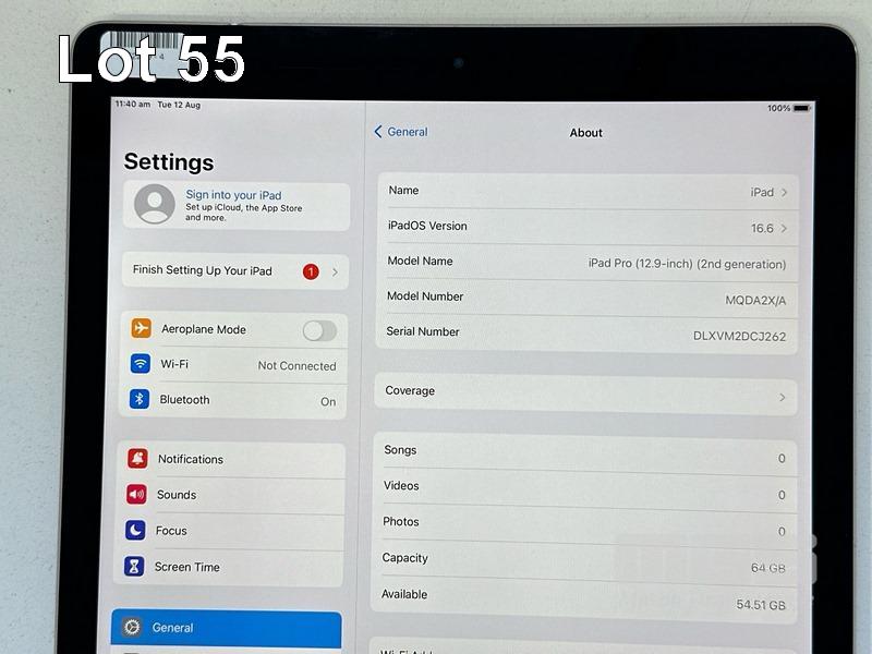 APPLE iPAD PRO 12.9 INCH, 2ND GEN, 64GB, Wi-Fi, SPACE GREY, MODEL MQDA2X/A, A1670 (NO CABLE, NO CHARGER) (NOTE: SCREEN BLEMISHES, MINOR SCRATCHES ON SCREEN) S/N:DLXVM2DCJ262