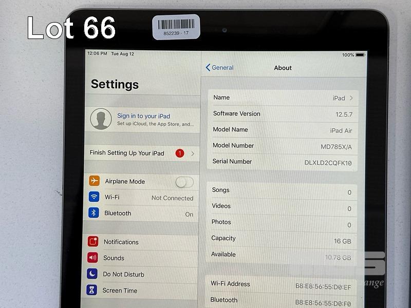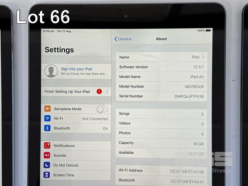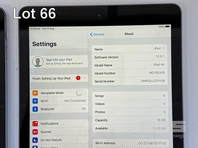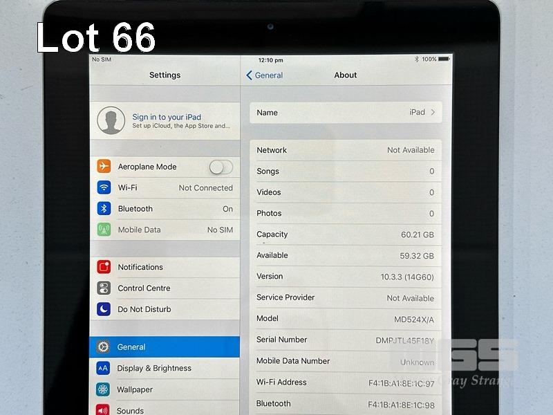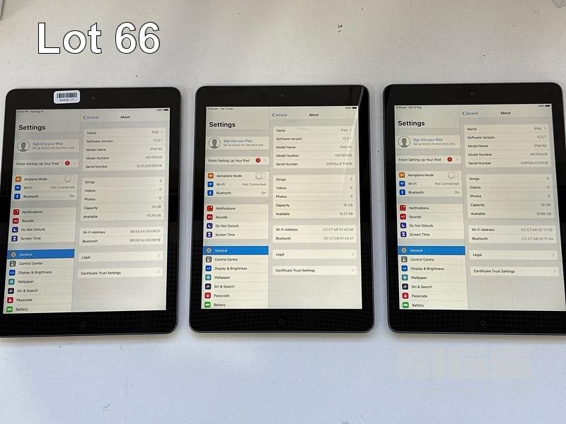 4 x APPLE iPADS INC. - 3 x APPLE iPAD AIR, 16GB, Wi-Fi, SPACE GREY, MODEL MD785X/A, A1474 - 1 x APPLE iPAD (4TH GEN), 64GB, Wi-Fi, CELLULAR, SPACE GREY, MODEL A1460 (NO CABLES, NO CHARGERS) S/N:DLXLD2CQFK10, DMPQ6JPTFK10, DMPQ6JCFFK10, DMPJTL45F18Y