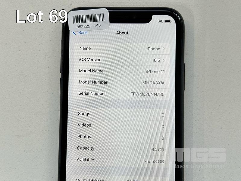 APPLE iPHONE 11, 64GB, MODEL MHDA3X/A, A2221, BLACK, BATTERY HEALTH 98% (NO CABLE, NO CHARGER) (NOTE: MINOR SCRATCHES ON SCREEN) S/N:FFWMLZENN735