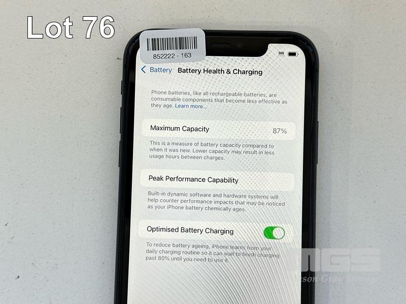 APPLE iPHONE 11, 64GB, MODEL MHDA3X/A, A2221, BLACK, BATTERY HEALTH 87% (NO CABLE, NO CHARGER) (NOTE: MINOR SCRATCHES ON SCREEN) S/N:DX3H3FWCN735