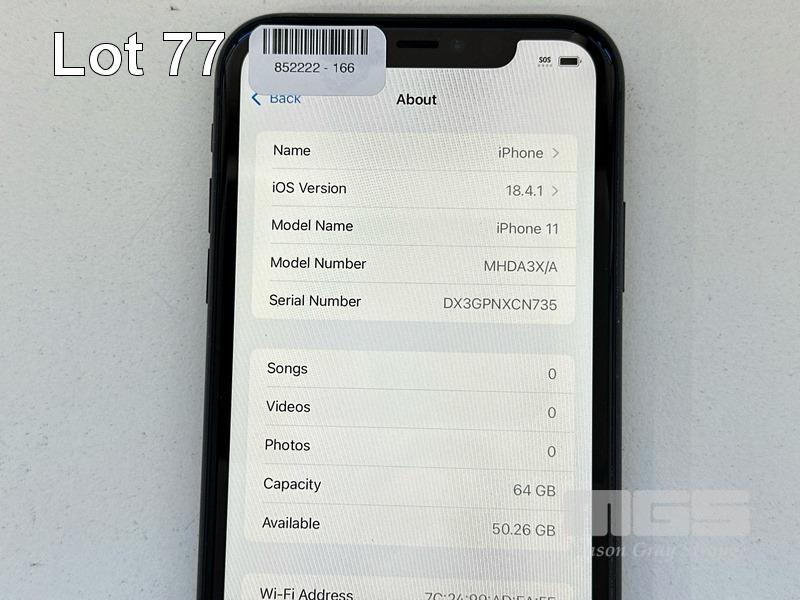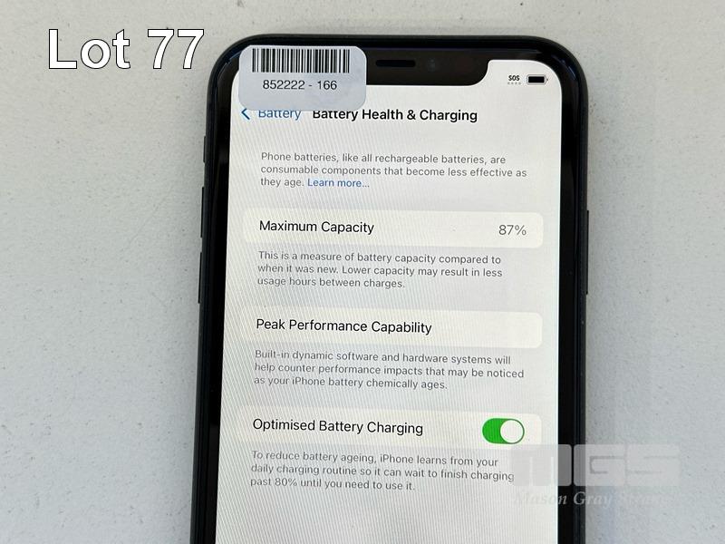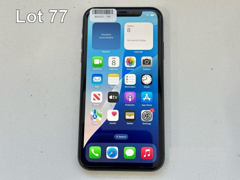 APPLE iPHONE 11, 64GB, MODEL MHDA3X/A, A2221, BLACK, BATTERY HEALTH 87% (NO CABLE, NO CHARGER) (NOTE: MINOR SCRATCHES ON SCREEN) S/N:DX3GPNXCN735