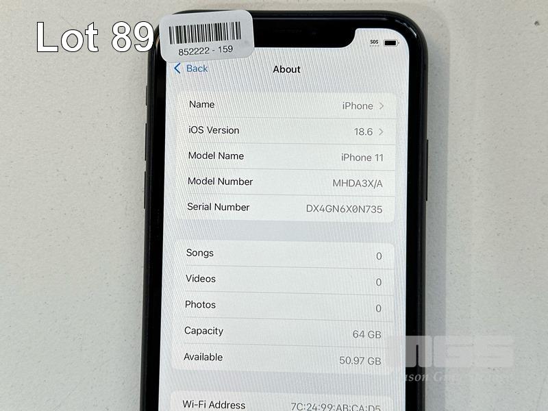 APPLE iPHONE 11, 64GB, MODEL MHDA3X/A, A2221, BLACK, BATTERY HEALTH 80% (NO CABLE, NO CHARGER) (NOTE: MINOR SCRATCHES ON SCREEN) S/N:DX4GN6X0N735