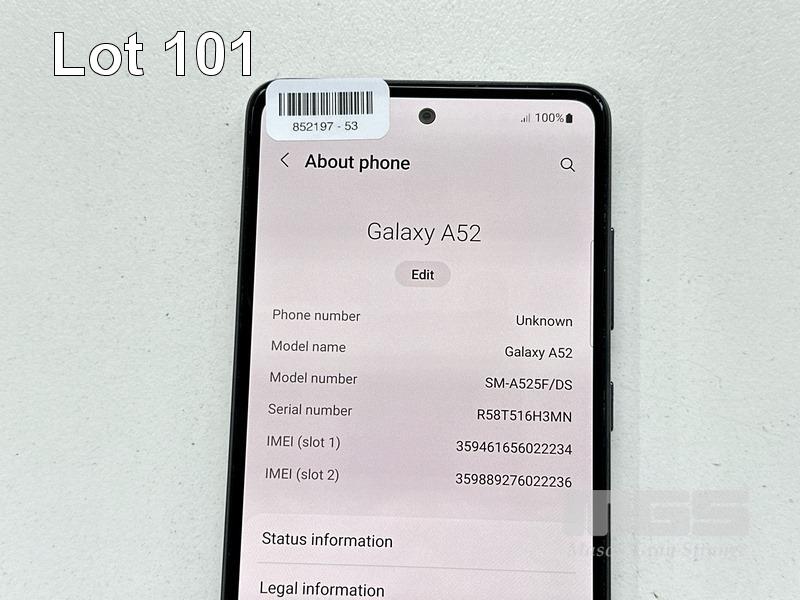SAMSUNG GALAXY A52 SMARTPHONE, MODEL SM-A525F, 128GB (NO USB-C CABLE, NO CHARGER) S/N:R58T516H3MN