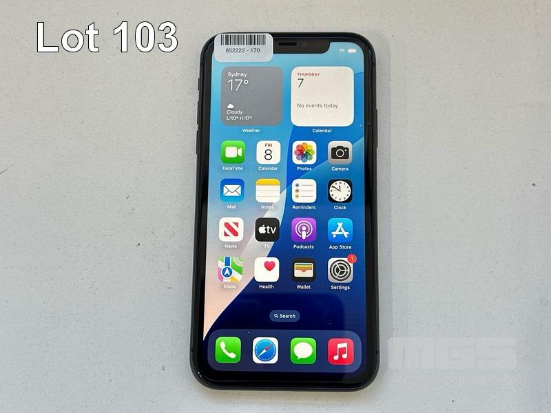 APPLE iPHONE 11, 64GB, MODEL MHDA3X/A, A2221, BLACK, BATTERY HEALTH 100% (NO CABLE, NO CHARGER) (NOTE: SCRATCHES ON SCREEN) S/N:DX3LXCX6N735