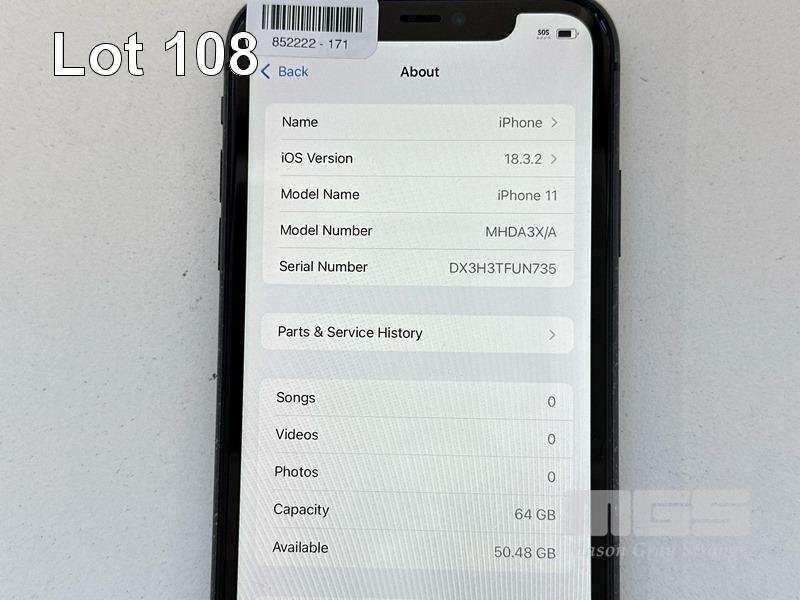 APPLE iPHONE 11, 64GB, MODEL MHDA3X/A, A2221, BLACK, BATTERY HEALTH 84% (NO CABLE, NO CHARGER) (NOTE: SCRATCHES ON SCREEN) S/N:DX3H3TFUN735