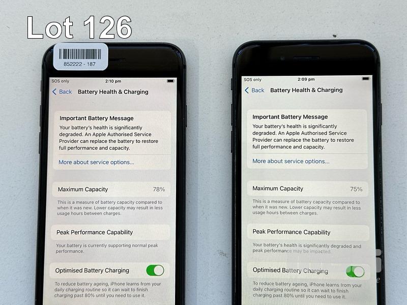2 x APPLE iPHONE 8, 64GB, SPACE GREY, MODEL MQ6K2X/A (NOTE: BATTERY SERVICE MESSAGE) (NO CABLES, NO CHARGERS) S/N:FFMYKLJNJC6C, C8PYFS88JC6C