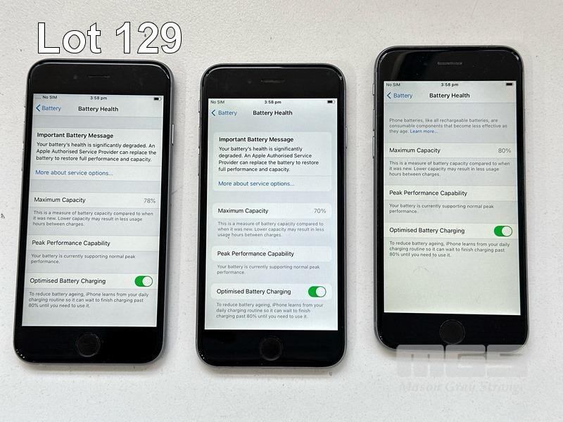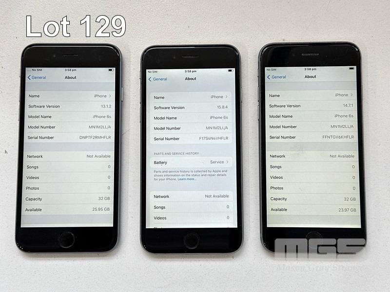 9 x APPLE iPHONES INC. - 5 x APPLE iPHONE 6S, 32GB, A1688 - 2 x APPLE iPHONE 6S, 32GB, A1688 (BATTERY SERVICE MESSAGE) - 2 x APPLE iPHONE 6, 16GB, A1586 (NO CABLES, NO CHARGERS) S/N:FVMWG0Z1HFLR, FFMVW2AVHFLR, FFMTPNEZHFLR, DNPTF2RMHFLR, F17S4N4VHFLR, FFNTGV6KHFLR, FK1XP32HHFLM, F18Q4J33G5MN, DNRPQU46G5MN