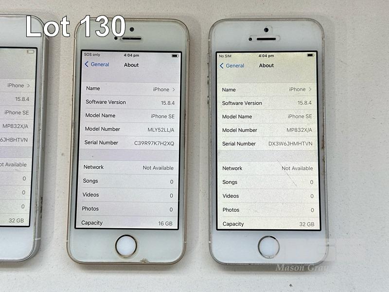 4 x APPLE iPHONES INC. - 3 x APPLE iPHONE SE, 32GB, A1723 - 1 x APPLE iPHONE SE, 16GB, A1662 (NO CABLES, NO CHARGERS) S/N:DX3WPJK9HTVL, DX3W6JHBHTVN,C39R97K7H2XQ, DX3W6JHMHTVN