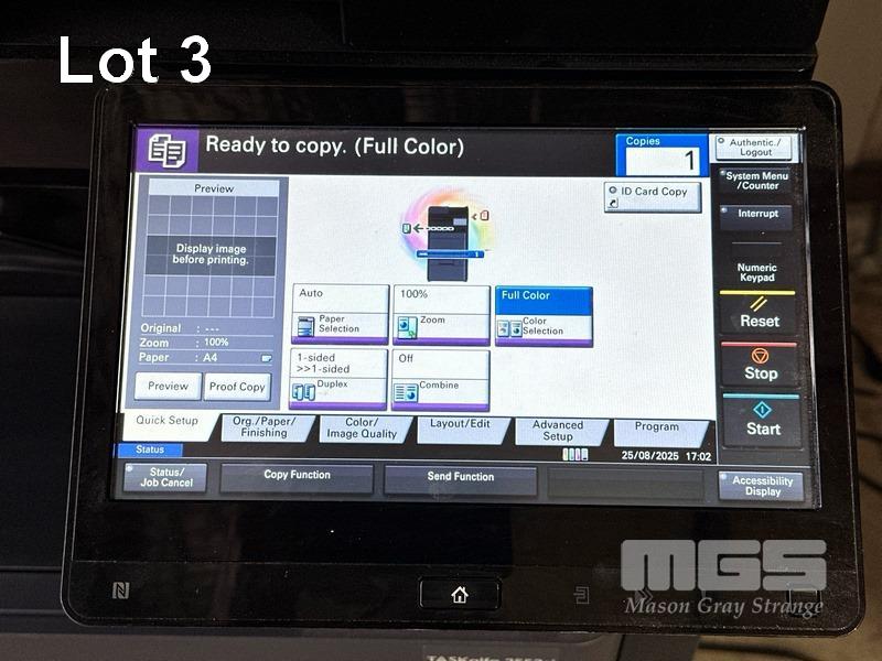 PHOTOCOPIER, KYOCERA TASKalfa 2553ci COLOUR DIGITAL, ADF, PRINTER USB & NETWORK PORTS, 7,849 COLOUR & 5,350 B&W COPIES SHOWING (TEST PAGE ATTACHED) S/N:RFN9Z01151