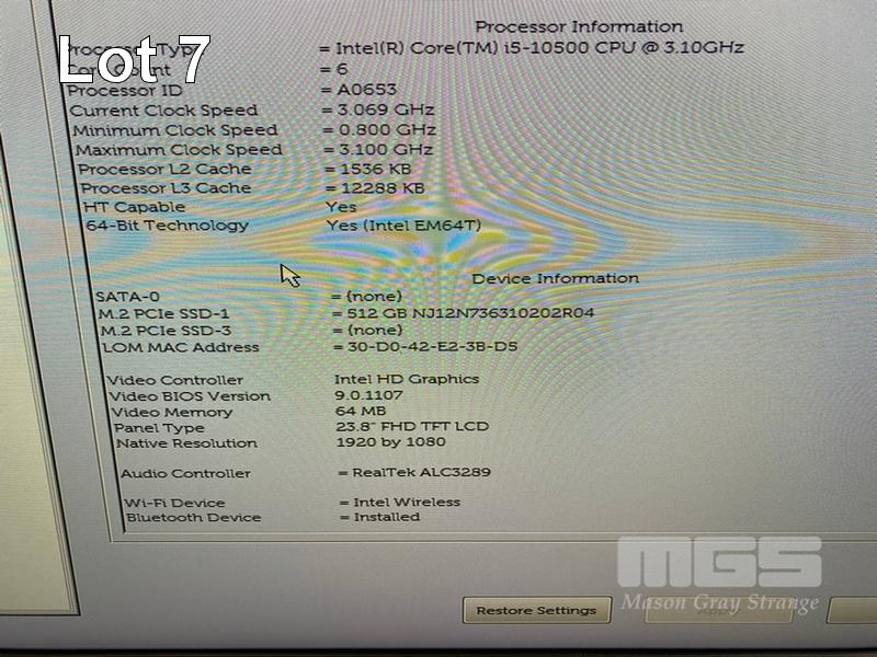 ALL-IN-ONE PC, DELL OPTIPLEX 7480, CORE i5 10500 (10TH GEN) @ 3.1GHz, 8GB DDR4 RAM, 512GB NVMe M.2 SSD, INBUILT 23.8" FHD WIDESCREEN (1920x1080), INTEL HD VIDEO, WEBCAM, 5 x USB, 1 x USB-C, Wi-Fi, BLUETOOTH, WINDOWS 11 HOME INSTALLED, KEYBOARD & MOUSE S/N:HJMWVD3