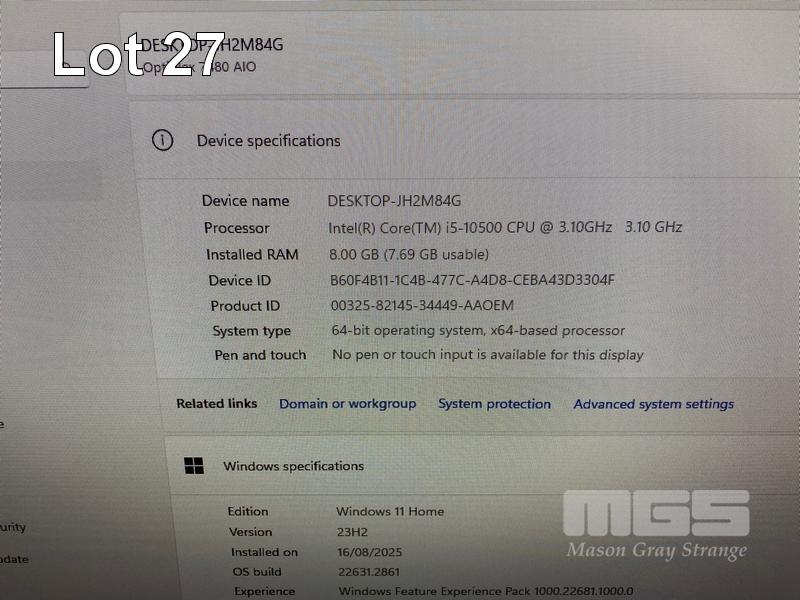ALL-IN-ONE PC, DELL OPTIPLEX 7480, CORE i5 10500 (10TH GEN) @ 3.1GHz, 8GB DDR4 RAM, 512GB NVMe M.2 SSD, INBUILT 23.8" FHD WIDESCREEN (1920x1080), INTEL HD VIDEO, WEBCAM, 5 x USB, 1 x USB-C, Wi-Fi, BLUETOOTH, WINDOWS 11 HOME INSTALLED, KEYBOARD & MOUSE S/N:DPW54F3