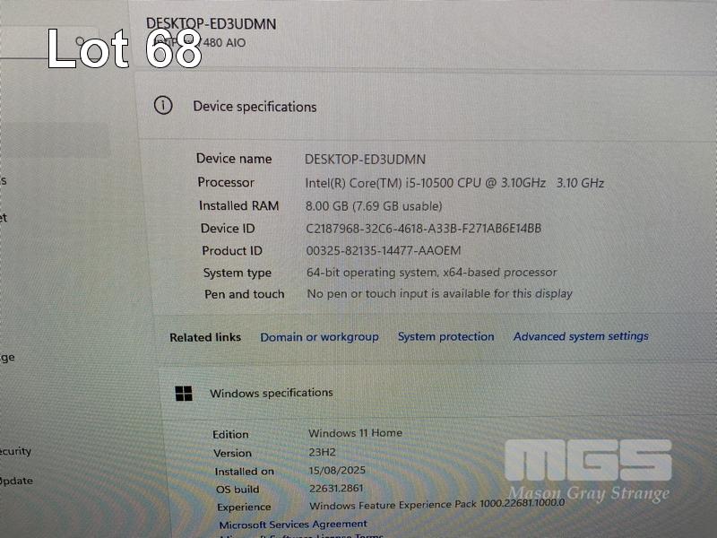 ALL-IN-ONE PC, DELL OPTIPLEX 7480, CORE i5 10500 (10TH GEN) @ 3.1GHz, 8GB DDR4 RAM, 512GB NVMe M.2 SSD, INBUILT 23.8" FHD WIDESCREEN (1920x1080), INTEL HD VIDEO, WEBCAM, 5 x USB, 1 x USB-C, Wi-Fi, BLUETOOTH, WINDOWS 11 HOME INSTALLED, KEYBOARD & MOUSE S/N:1KMWVD3