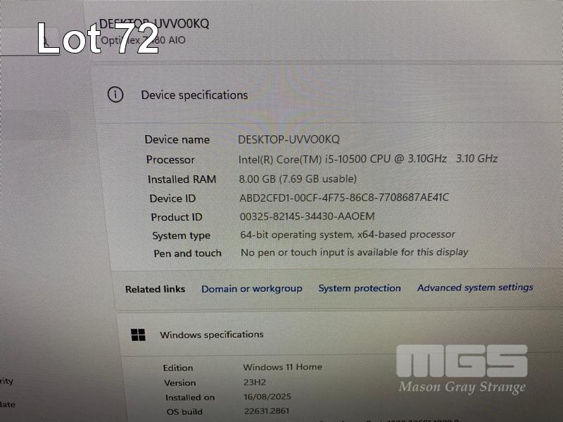 ALL-IN-ONE PC, DELL OPTIPLEX 7480, CORE i5 10500 (10TH GEN) @ 3.1GHz, 8GB DDR4 RAM, 512GB NVMe M.2 SSD, INBUILT 23.8" FHD WIDESCREEN (1920x1080), INTEL HD VIDEO, WEBCAM, 5 x USB, 1 x USB-C, Wi-Fi, BLUETOOTH, WINDOWS 11 HOME INSTALLED, KEYBOARD & MOUSE S/N:9NW54F3