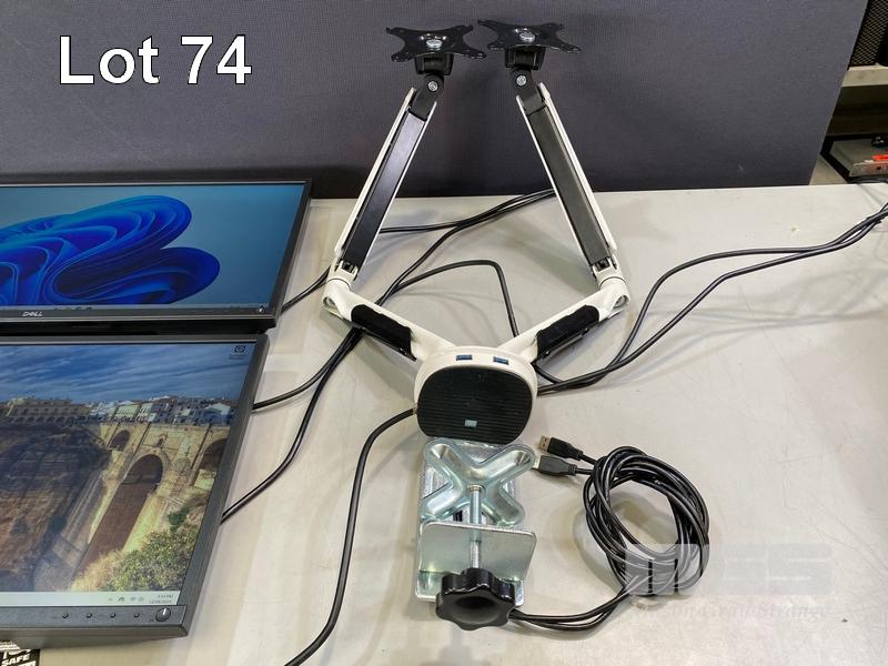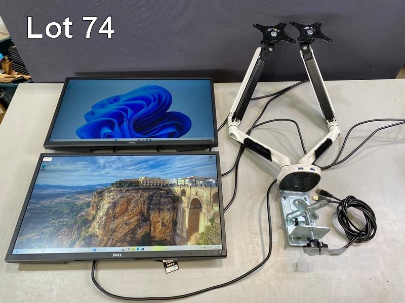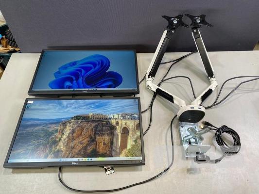 2 x MONITORS, DELL E2420H 23.8" IPS LED-BL LCD WIDESCREEN, DISPLAYPORT, VGA (WITH CABLES) WITH DUAL DESK MOUNT MONITOR ARM, WHITE S/N:2V82WD3, 2VP0WD3