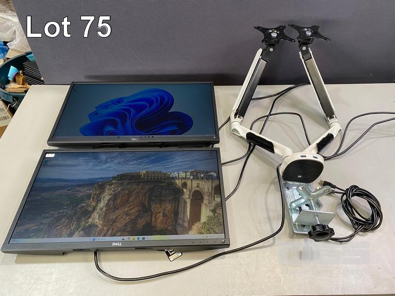 2 x MONITORS, DELL E2420H 23.8" IPS LED-BL LCD WIDESCREEN, DISPLAYPORT, VGA (WITH CABLES) WITH DUAL DESK MOUNT MONITOR ARM, WHITE S/N:9KN4HH3, 9KP5HH3