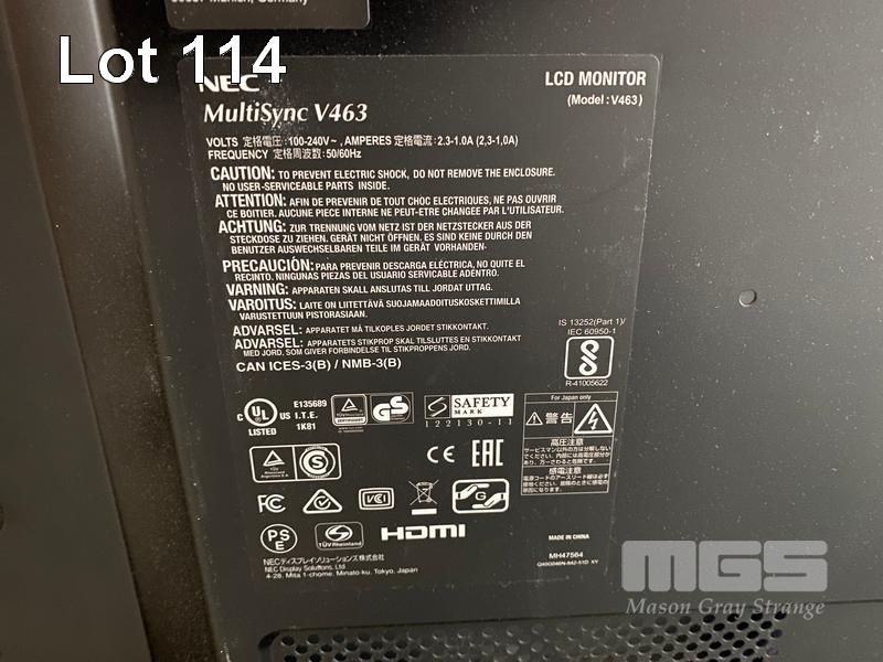 MONITOR, NEC MULTISYNC V463 46" COMMERCIAL LCD DISPLAY (NO REMOTE, NO STAND) S/N:7Y041596NB