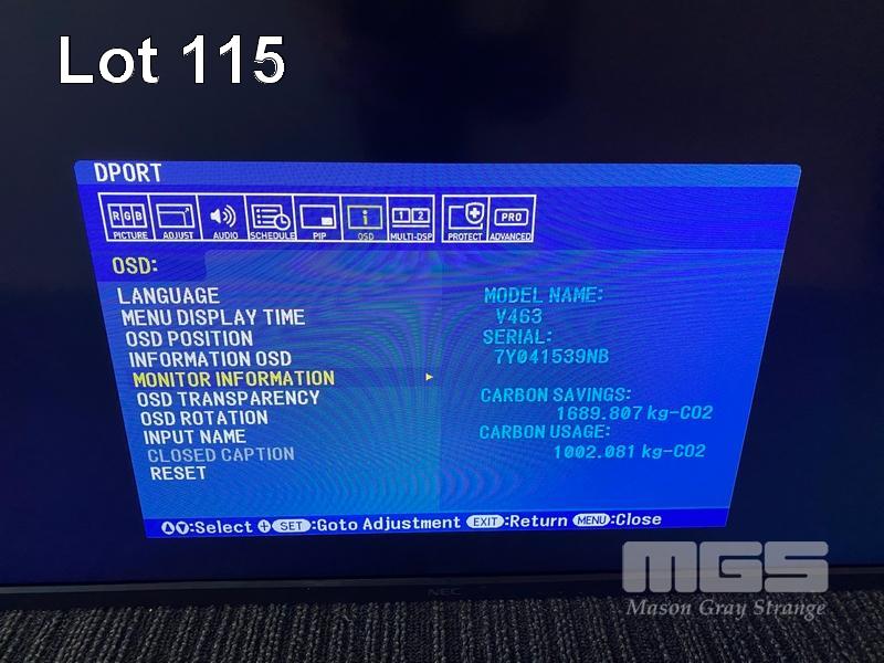 MONITOR, NEC MULTISYNC V463 46" COMMERCIAL LCD DISPLAY (NO REMOTE, NO STAND) S/N:7Y041539NB