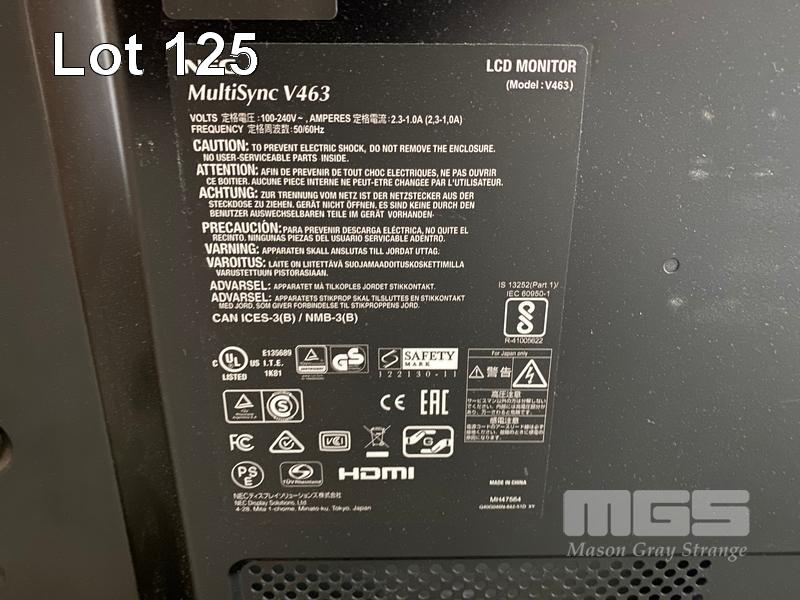 MONITOR, NEC MULTISYNC V463 46" COMMERCIAL LCD DISPLAY (NO REMOTE, NO STAND) (NOTE: SMALL SCRATCH ON SCREEN) S/N:7Y041592NB