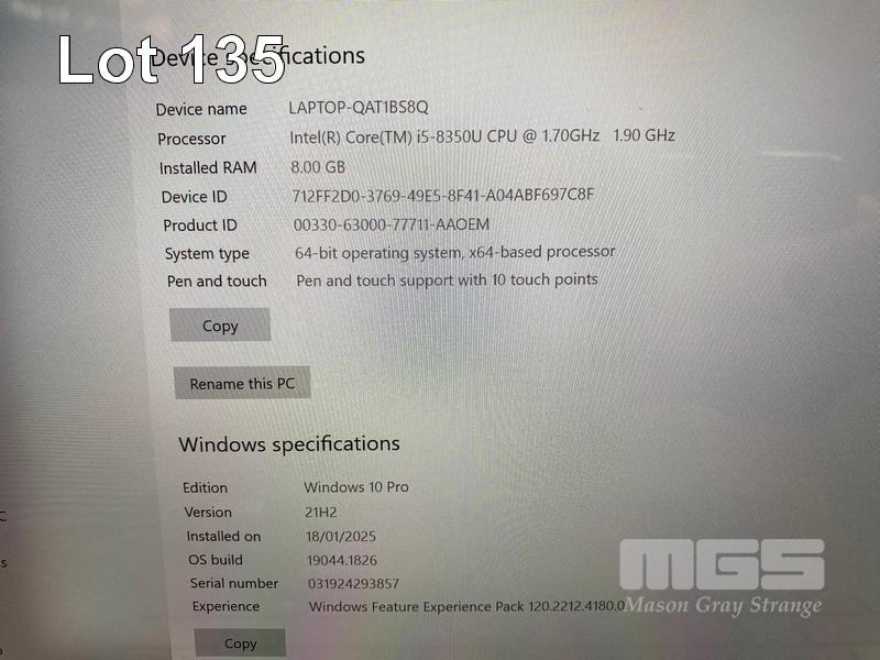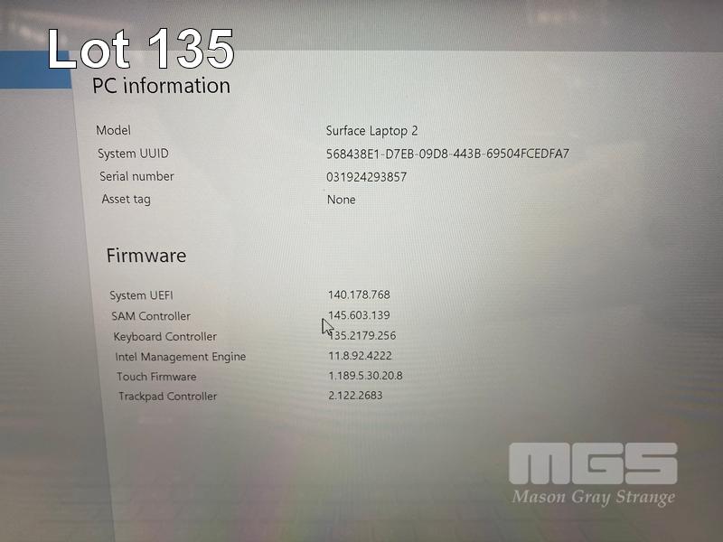 LAPTOP, MICROSOFT SURFACE 2, MODEL 1769, CORE i5 8350U (8TH GEN) @ 1.7GHz, 8GB DDR4 RAM, 256GB NVMe M.2 SSD, 13.5" WIDESCREEN (2256x1504), INTEL UHD GRAPHICS 620, Wi-Fi, BLUETOOTH, WINDOWS 10 PRO INSTALLED & POWER SUPPLY