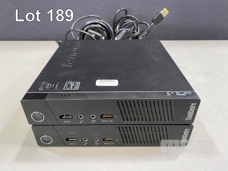 2 x DESKTOP PCS INC - LENOVO THINKCENTRE M73 TINY, CORE i3 4160T @ 3.1GHz, 8GB RAM, NO HDD WITH POWER SUPPLIES S/N:PC0506XN, PC0506XG