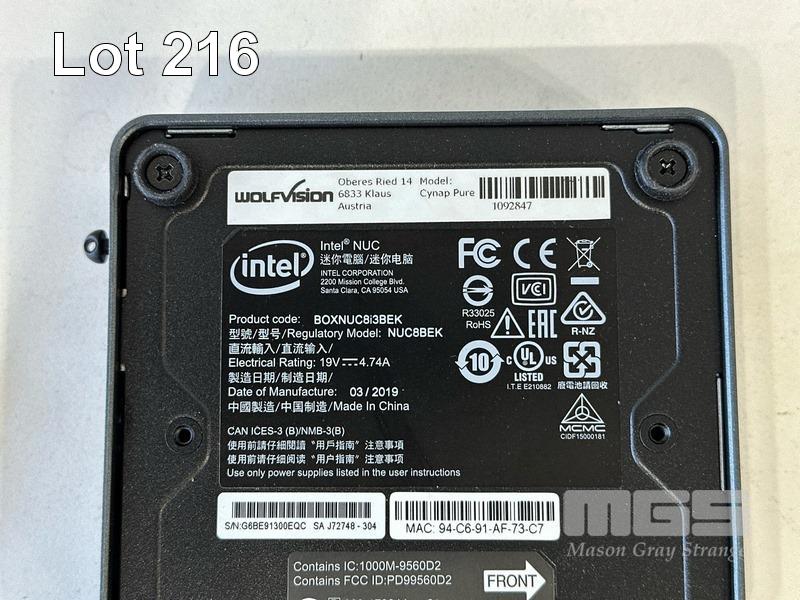 WOLFVISION CYNPA PURE WIRELESS PRESENTATION, INTEL NUC, MODEL NUC8BEK, CORE i3 8109U (8TH GEN) @ 3GHz, 4GB DDR4 RAM, 16GB M.2 SSD & POWER SUPPLY S/N:G6BE91300EQC