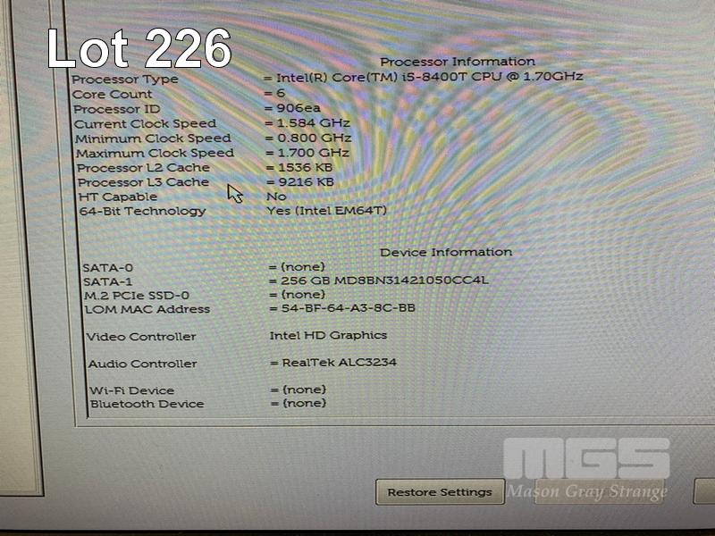 DESKTOP PC, DELL OPTIPLEX 3060 MICRO, CORE i5 8400T (8TH GEN) @ 1.7GHz, 8GB DDR4 RAM, 256GB M.2 SSD, INTEL HD VIDEO, 6 x USB, WINDOWS 11 PRO INSTALLED (NO POWER SUPPLY, NO KEYBOARD, NO MOUSE) S/N:GL9P8T2