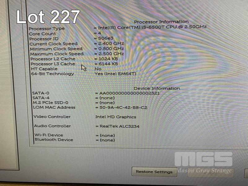 DESKTOP PC, DELL OPTIPLEX 7040 MICRO, CORE i5 6500T (6TH GEN) @ 2.5GHz, 8GB DDR4 RAM, 512GB SSD, INTEL HD VIDEO, 6 x USB, WINDOWS 11 PRO INSTALLED (NO POWER SUPPLY, NO KEYBOARD, NO MOUSE) S/N:7BB92K2