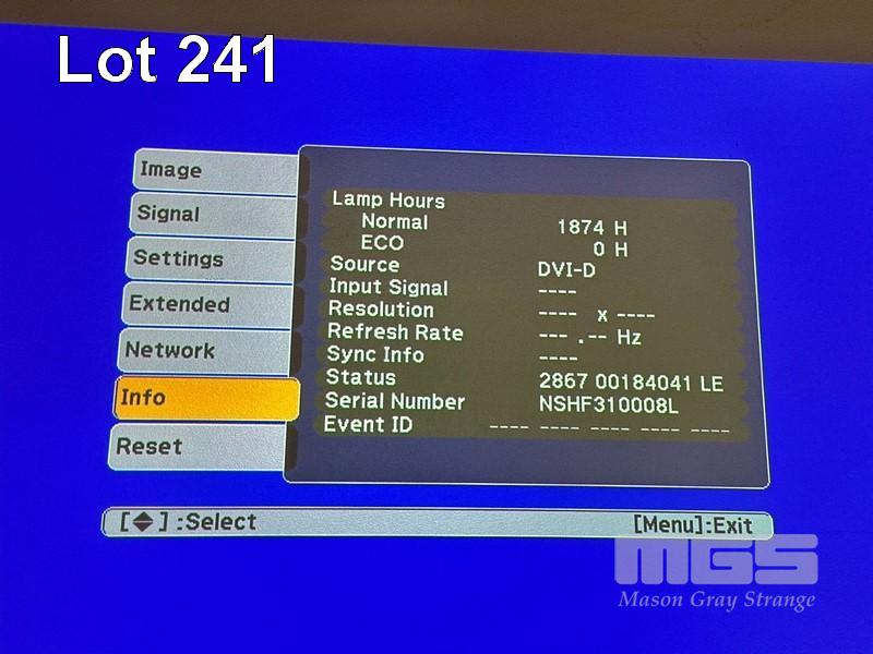PROJECTOR, EPSON EB-G5750WU WUXGA 3LCD LARGE VENUE, 4,500 LUMENS, 1,874 NORMAL HOURS SHOWING WITH REMOTE S/N:NSHF310008L