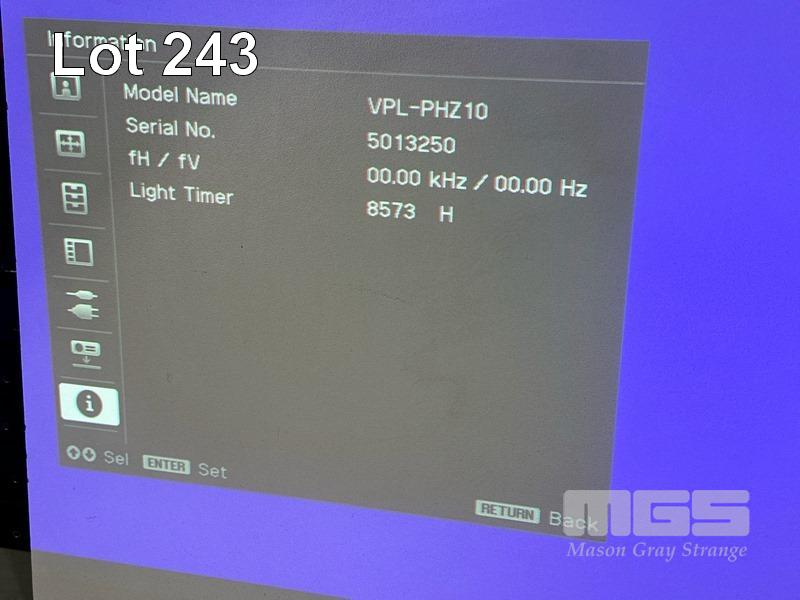 LASER PROJECTOR, SONY VPL-PHZ10 WUXGA 3LCD, 5,000 LUMENS, 8,573 HOURS SHOWING WITH REMOTE S/N:5013250