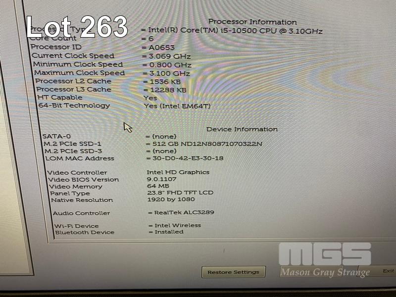 ALL-IN-ONE PC, DELL OPTIPLEX 7480, CORE i5 10500 (10TH GEN) @ 3.1GHz, 8GB DDR4 RAM, 512GB NVMe M.2 SSD, INBUILT 23.8" FHD WIDESCREEN (1920x1080), INTEL HD VIDEO, WEBCAM, 5 x USB, 1 x USB-C, Wi-Fi, BLUETOOTH, WINDOWS 11 HOME INSTALLED, KEYBOARD & MOUSE S/N:4PW54F3