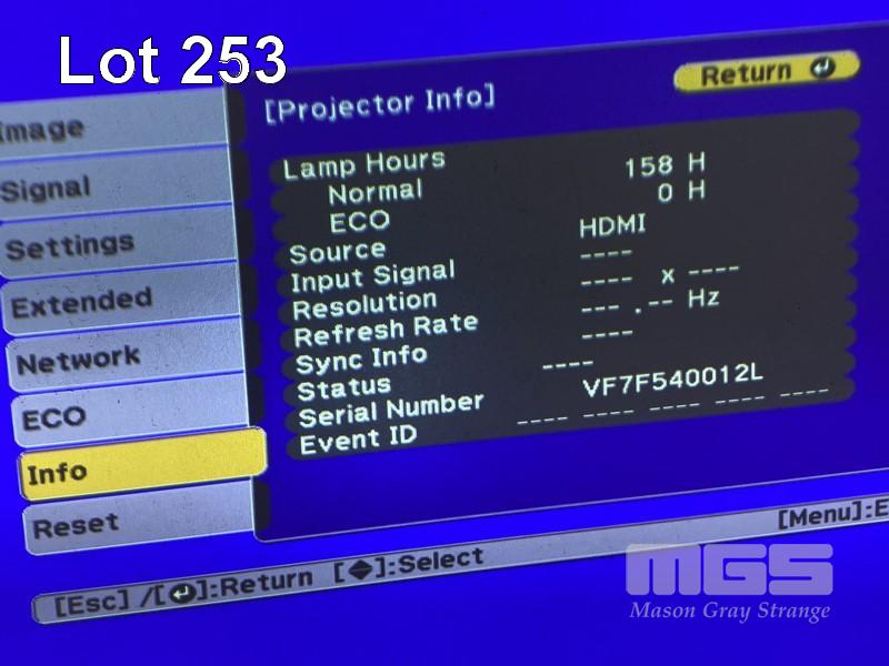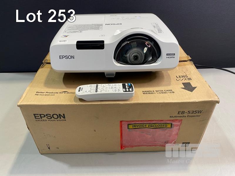 PROJECTOR, EPSON EB-535W SHORT THROW, 3400 LUMENS, 158 NORMAL HOURS SHOWING & REMOTE S/N:VF7540012L