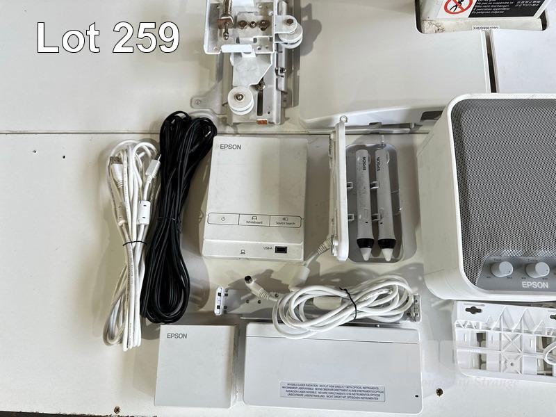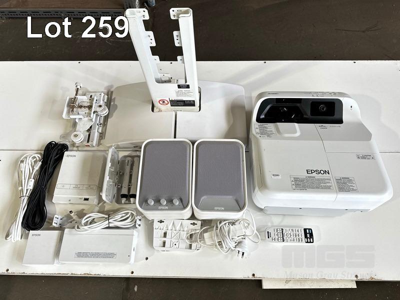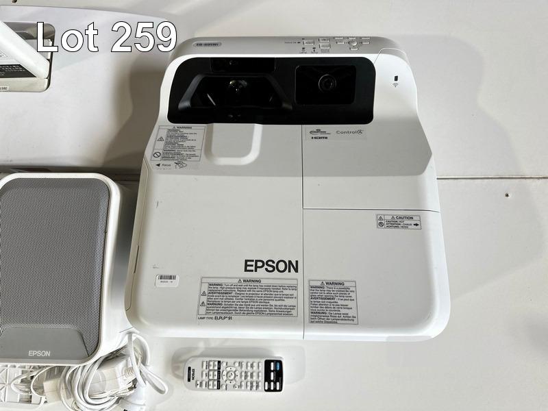 PROJECTOR, EPSON EB-695Wi ULTRA SHORT THROW, 3500 LUMENS, 255 NORMAL HOURS & 56 ECO HOURS SHOWING & REMOTE WITH BRACKET, ELPSP02 SPEAKERS, CONTROL BOX, H599LCU TOUCH UNIT & INTERACTIVE PENS S/N:X3QP0900163