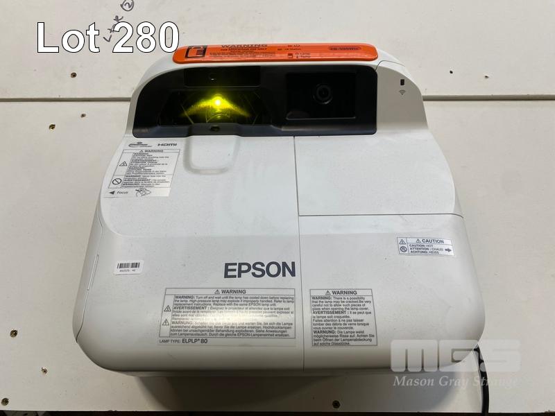 PROJECTOR, EPSON EB-595Wie ULTRA SHORT THROW, 3300 LUMENS, 2145 NORMAL HOURS & 28 ECO HOURS SHOWING & REMOTE WITH BRACKET S/N:UHQF4X0306L