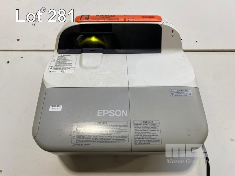 PROJECTOR, EPSON EB-480e ULTRA SHORT THROW, 3000 LUMENS, 2825 NORMAL HOURS SHOWING & REMOTE WITH BRACKET S/N:QWEF270075L