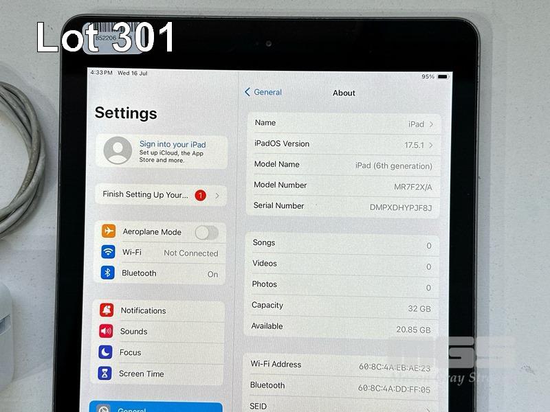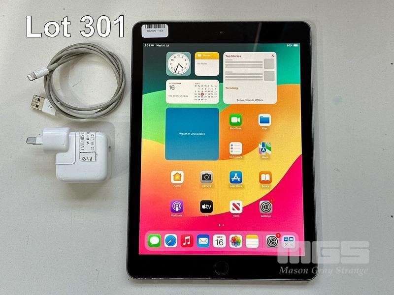 APPLE iPAD 6TH GEN, 32GB, Wi-Fi, SPACE GREY, MODEL MR7F2X/A, A1893 WITH CABLE & CHARGER (NOTE: MINOR SCRATCHES ON SCREEN) S/N:DMPXDHYPJF8J