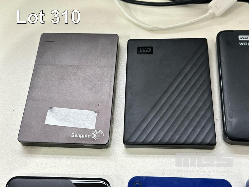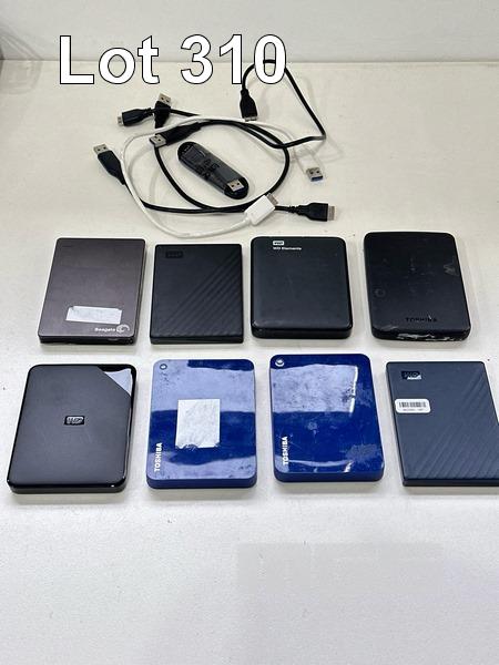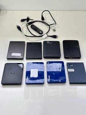 8 x ASST PORTABLE HARD DRIVES INC. - 1 x WD 2TB - 2 x TOSHIBA 1TB - 2 x WD 1TB - 1 x SEAGATE 1TB - 1 x TOSHIBA 500GB - 1 x WD 500GB WITH 5 x USB 3.0 CABLES