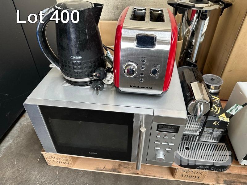 MICROWAVE, TOASTER, KETTLE, COFFEE POD MACHINE, GRILL, URN, SANDWICH PRESS, PAPER COFFEE CUPS