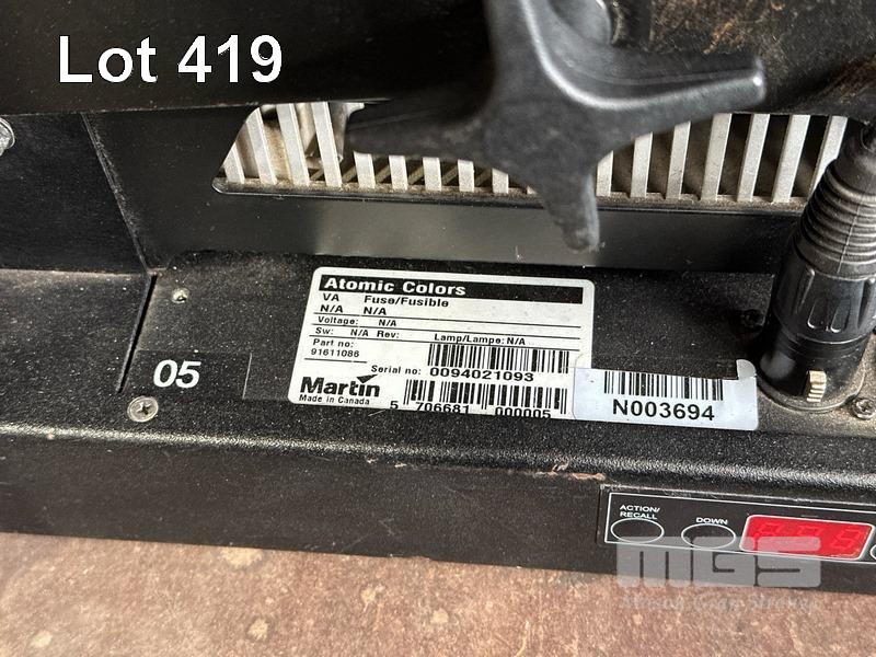 4 x MARTIN ATOMIC 3000 DMX STROBE LIGHTS WITH ATOMIC COLORS SCROLLER ADD-ON UNITS