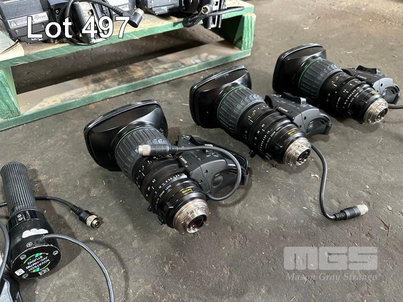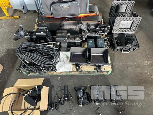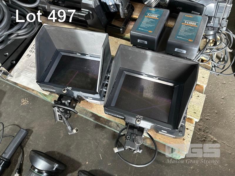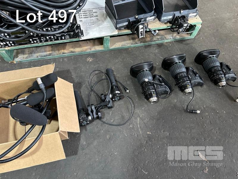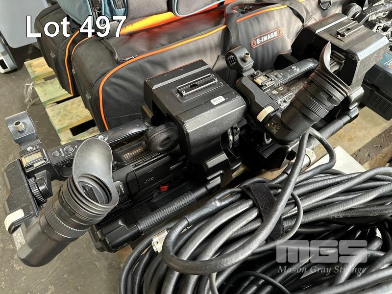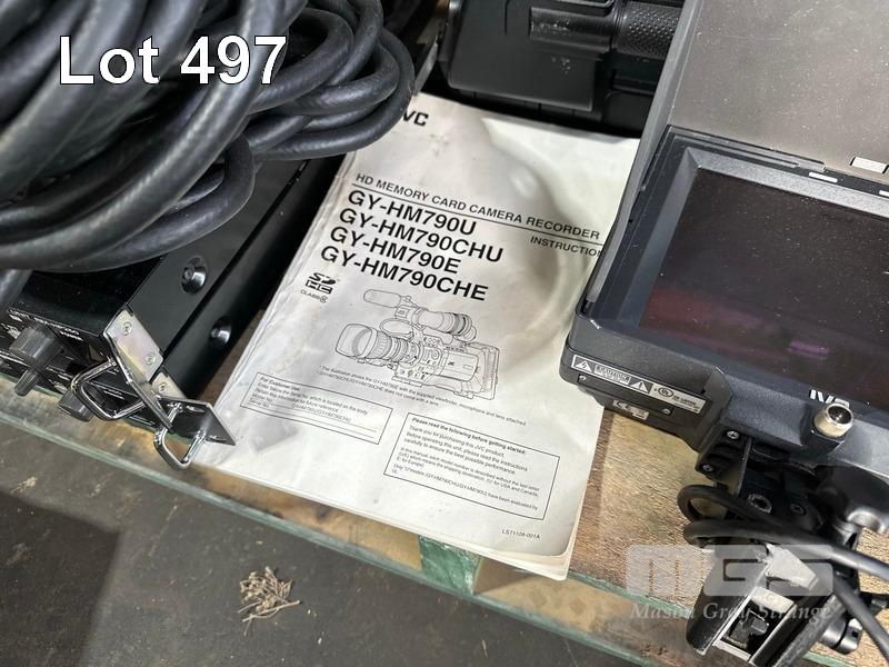 3 x JVC GY-HM790E HD STUDIO CAMERA RECORDERS 2 x JVC VF-HP790G LCD VIEWFINDERS 2 x JVC KA-790G STUDIO ADAPTORS 2 x JVC RM-HP250 REMOTE CONTROL UNITS WITH CABLES 3 x CANON BCTV ZOOM LENSES 2 x CITYTEK T-L190S BATTERIES WITH DUAL CHARGER 2 x TERADEK BOLT 500 XT BATTERY PLATE MOUNTS & CASE 1 x CAMERA CARRY BAG 2 x E-IMAGE CT-7802 TRIPODS & BAGS