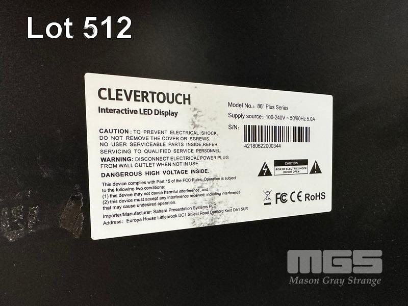 CLEVERTOUCH 86" PLUS SERIES INTERACTIVE LED DISPLAY (NO REMOTE, NO STAND) (NOTE: VERY HEAVY) S/N:42180622000344