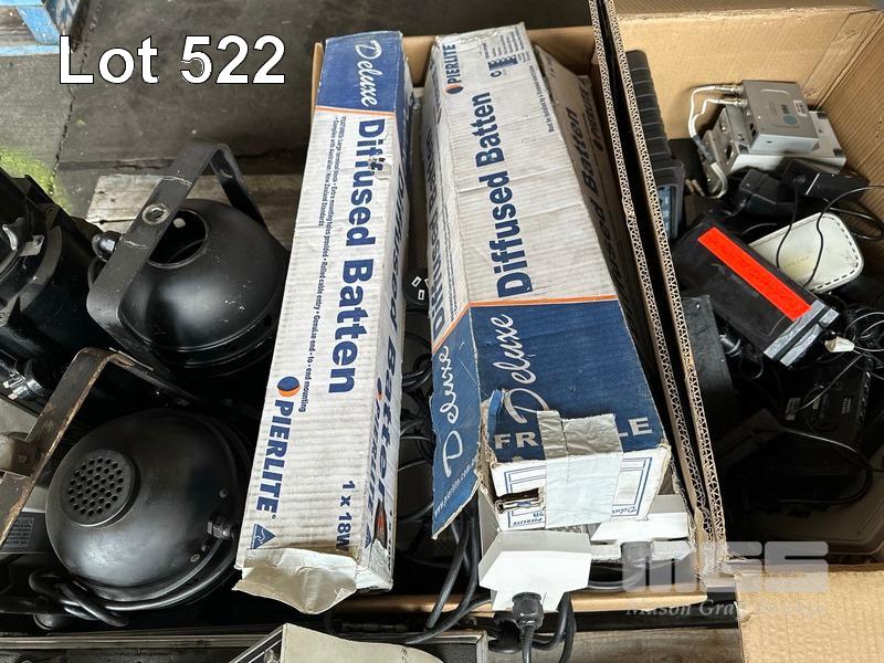 1 x PALLET LOT ASST AV EQUIPMENT INC. SONY PTZ CAMERA & CASE, LIGHTS, DIFFUSED BATTEN LIGHTS, RUGGED NETWORKING, CISO ACCESS POINT, JANDS FOUR CHANNEL DIMMER, MOTOROLA TWO-WAY RADIOS ETC