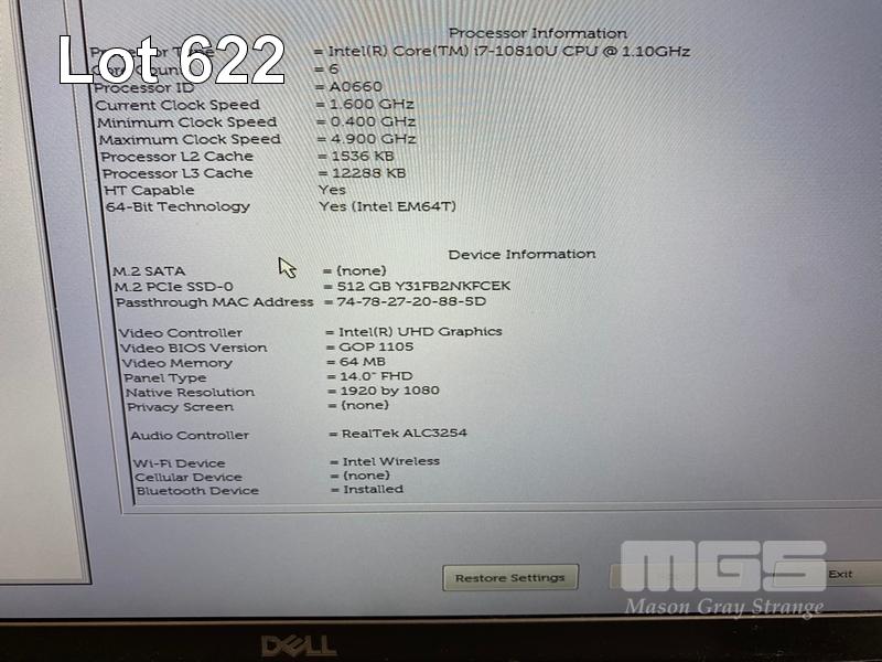 LAPTOP, DELL LATITUDE 7410, CORE i7 10810U (10TH GEN) @ 1.1GHz, 16GB DDR4 RAM, 512GB NVMe M.2 SSD, 14" WIDESCREEN (1920x1080), INTEL UHD GRAPHICS, Wi-Fi, BLUETOOTH, WINDOWS 11 PRO INSTALLED (NO USB-C POWER SUPPLY) (NOTE: SOME KEYBOARD KEYS WORN, BATTERY NOT HOLDING CHARGE, RUBBER PAD MISSING ON BOTTOM OF LAPTOP) S/N:23S5BC3
