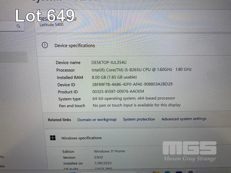 LAPTOP, DELL LATITUDE 5400, CORE i5 8265U (8TH GEN) @ 1.6GHz, 8GB DDR4 RAM, 512GB NVMe M.2 SSD, 14" WIDESCREEN (1920x1080), INTEL UHD GRAPHICS 620, Wi-Fi, BLUETOOTH, WINDOWS 11 HOME INSTALLED & POWER SUPPLY S/N:5WSBP13