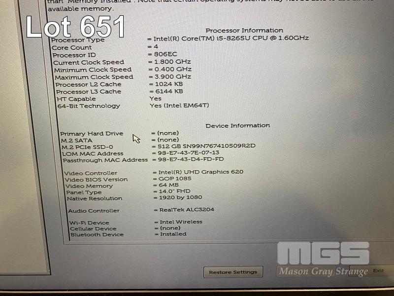 LAPTOP, DELL LATITUDE 5400, CORE i5 8265U (8TH GEN) @ 1.6GHz, 8GB DDR4 RAM, 512GB NVMe M.2 SSD, 14" WIDESCREEN (1920x1080), INTEL UHD GRAPHICS 620, Wi-Fi, BLUETOOTH, WINDOWS 11 HOME INSTALLED & POWER SUPPLY S/N:5KV4ZY2